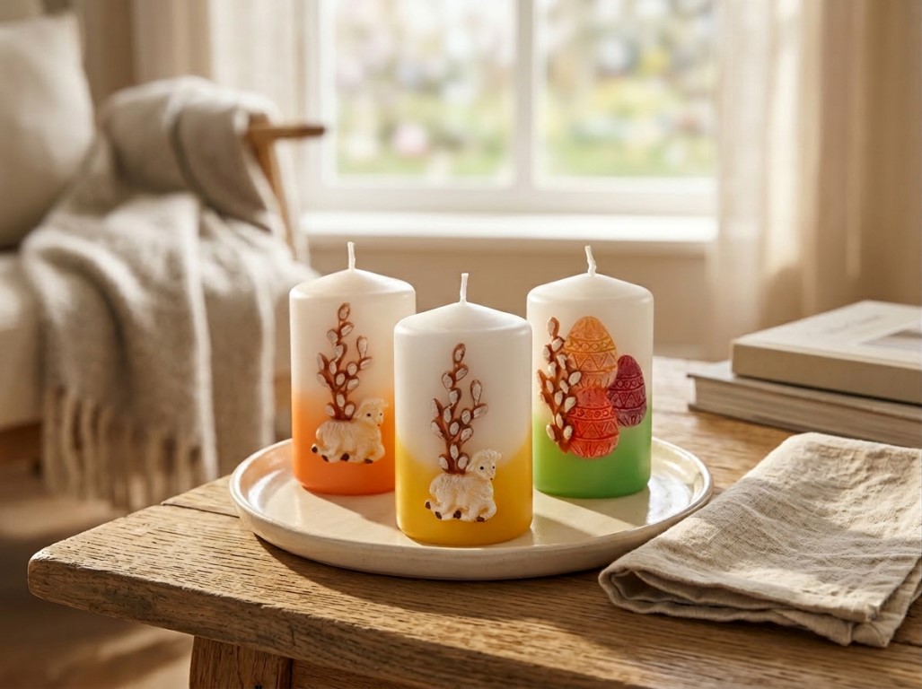 Válec o rozměru 60×100 mm s máčenou svíčkou a dekorativní aplikací motivu kraslice a beránka. Jednotlivé kusy jsou dodávány v mixu barev a detaily se mohou mírně lišit.Svíčka je vhodná pro velikonoční výzdobu, aranžmá nebo dekorativní účely. Veselý motiv kraslice a beránka dodá prostoru slavnostní a jarní vzhled, ideální pro dekorace doma i jako dárek. Zboží je dodáváno v mixu. Doručované zboží je vybíráno náhodně a nelze vybrat konkrétní provedení.