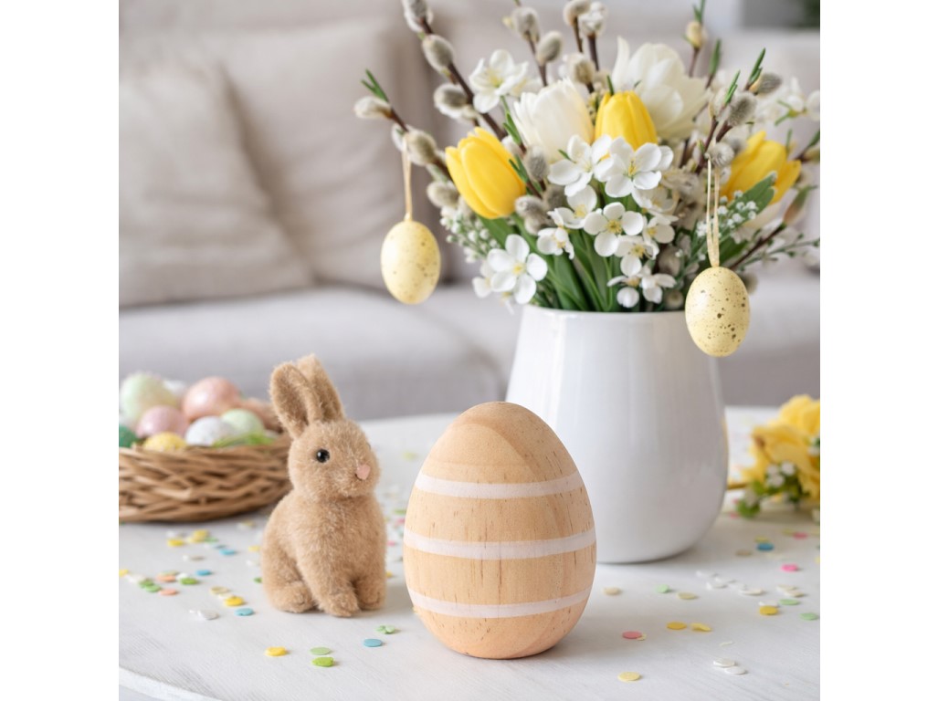Dekorativní kraslice o rozměru 40×40×55 mm s jemnými motivy puntíků a proužků v přírodních barevných variantách. Jednotlivé kusy jsou dodávány v mixu a odstíny se mohou lišit.Kraslice je vhodná pro velikonoční dekorace, aranžmá do košíků, na stoly nebo do jarních dekorací. Přírodní barvy dodávají prostoru autentický a jemný jarní vzhled. Zboží je dodáváno v mixu. Doručované zboží je vybíráno náhodně a nelze vybrat konkrétní provedení.
