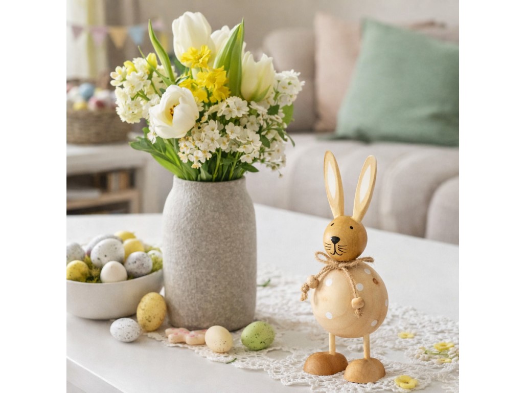 Dekorativní dřevěný zajíc o rozměrech 50×50×140 mm je ideální pro jarní i velikonoční výzdobu. Přírodní provedení zvýrazňuje rustikální a útulný vzhled, díky kterému se skvěle hodí na stůl, polici nebo do aranžmá s květinami.Tento dřevěný zajíc dodá každému prostoru hravý a stylový prvek a je vhodný jak pro domácí dekoraci, tak jako originální dárek. Zboží je dodáváno v mixu. Doručované zboží je vybíráno náhodně a nelze vybrat konkrétní provedení.