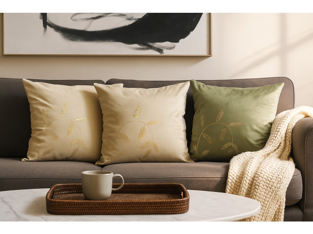 Stílusos bársonypárna finom csillogással és finom arany ágmintával, ami feldobja kanapédat, ágyadat vagy foteledet. Kellemes természetes árnyalatokban - zöld és bézs - kínáljuk. Kellemes tapintású, elegáns a szemnek. Az áruk vegyes kiszerelésben kerülnek kiszállításra, és nem lehet konkrét dizájnt választani.