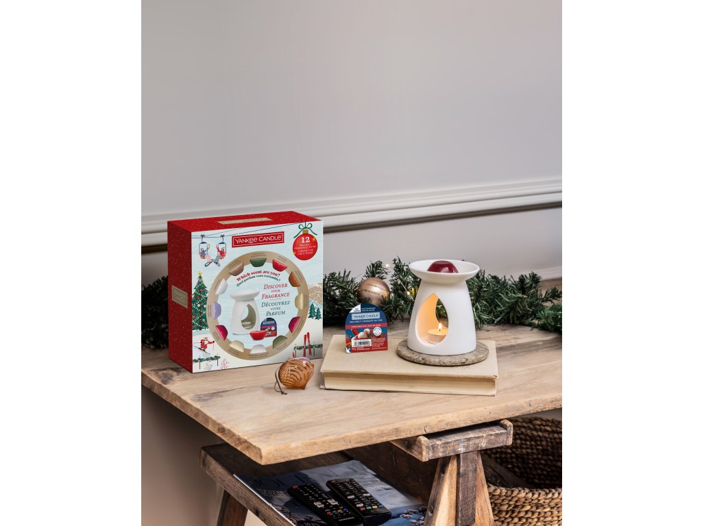 Ebbe a gyönyörű ajándékszettbe egy fehér aromalámpa, egy illatmentes teamécses és 12 nagyon erősen illatosított illatviasz (akár 8 órán át) található a legnépszerűbb illatokban. Silver Sage & Pine, Christmas Eve, Cinnamon Stick, Vanilla Cupcake, Red Apple Wreath, Warm Cashmere, White Spruce & Grapefruit, Christmas Cookie, Black Cherry, Lemon Lavender, Clean Cotton®, Sage & Citrus.